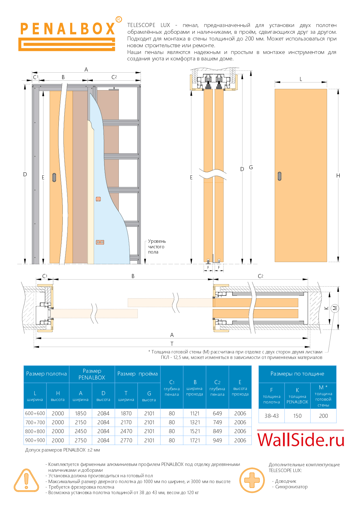 Перейти к описаниюТелескопический пенал для межкомнатных дверей. Состоит из комплекта на 2 полотна, попарно сдивгающихся в одну сторону. Используется фурнитура собственного производства, бесшумные ролики на подшипниках.